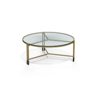 Three sets of twin legs rise vertically to a metal ring that supports the top of the Ripley occasional tables. These legs are smartly powder-coated at the base with a secondary color from the main frame. The artistic top adds additional character and style as it is crafted of beautiful fused glass.