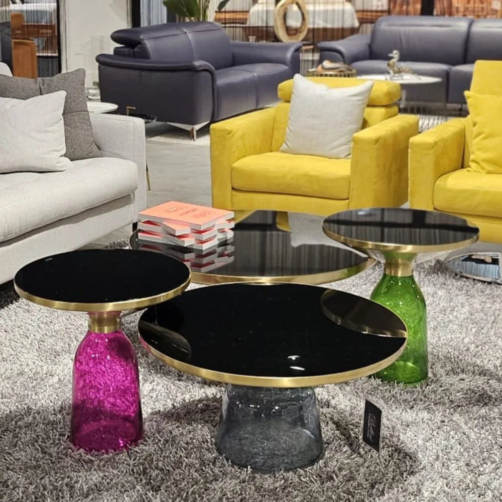 Elevate your space with the RITZ 20", featuring a sleek black glass top paired with a vibrant green blown glass base. This unique piece showcases expert Italian craftsmanship, combining modern design with artisanal glasswork to deliver both style and durability. Ideal for adding a sophisticated focal point to any room.