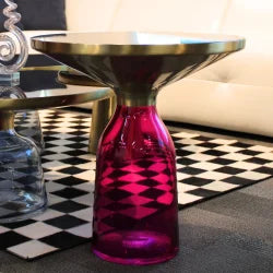 Elevate your space with the RITZ 20", featuring a sleek black glass top paired with a vibrant pink blown glass base. This unique piece showcases expert Italian craftsmanship, combining modern design with artisanal glasswork to deliver both style and durability. Ideal for adding a sophisticated focal point to any room.