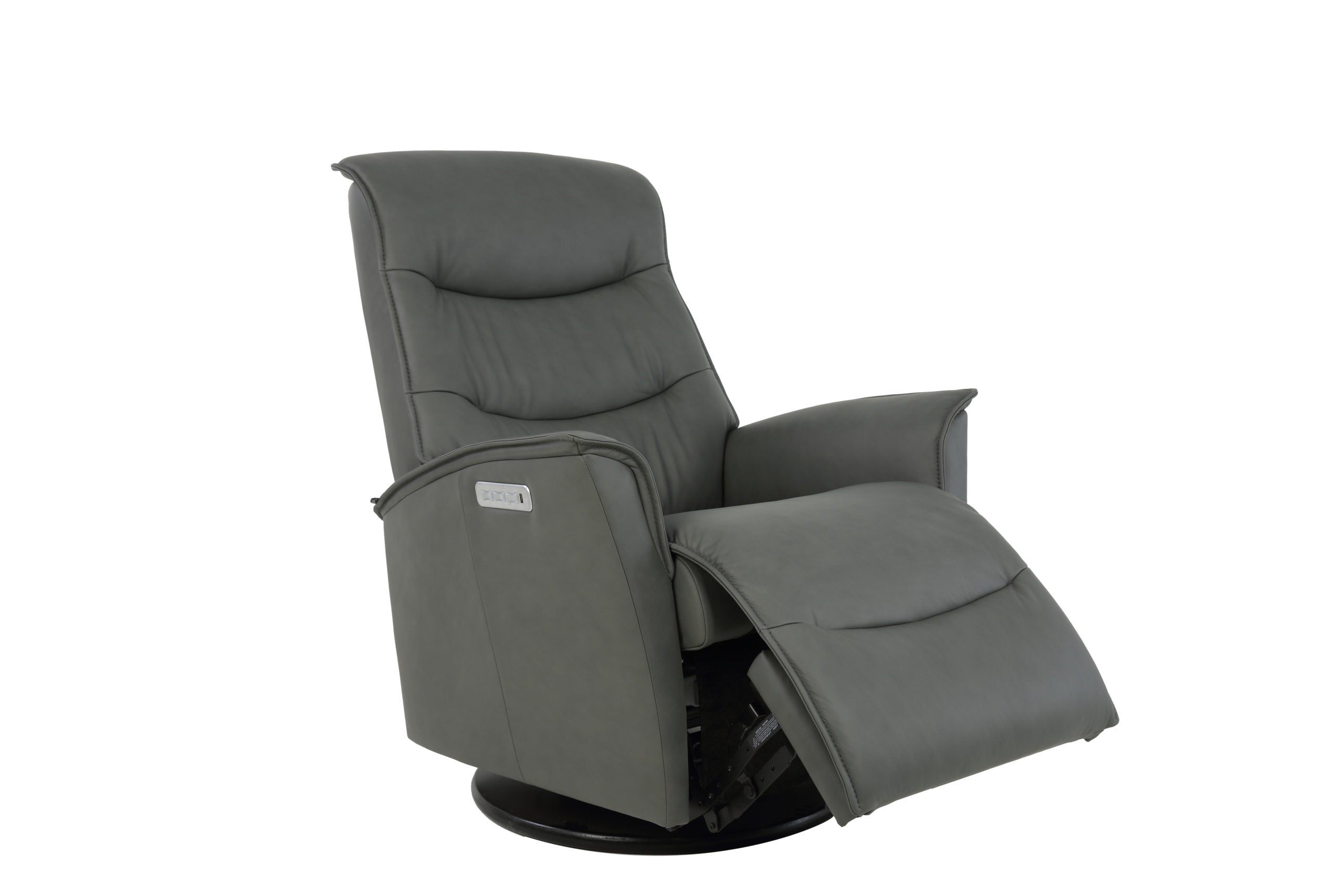 The Fjords Dallas swing relaxer, featuring our first three motor system, features controls for reclining, power lumbar support and power head / neck support. These details makes the seating experience ergonomic and gives your lower back and neck correct support. Available in all our leathers and select fabrics, the Dallas is available in two sizes, small and large. Black base is standard on Dallas.