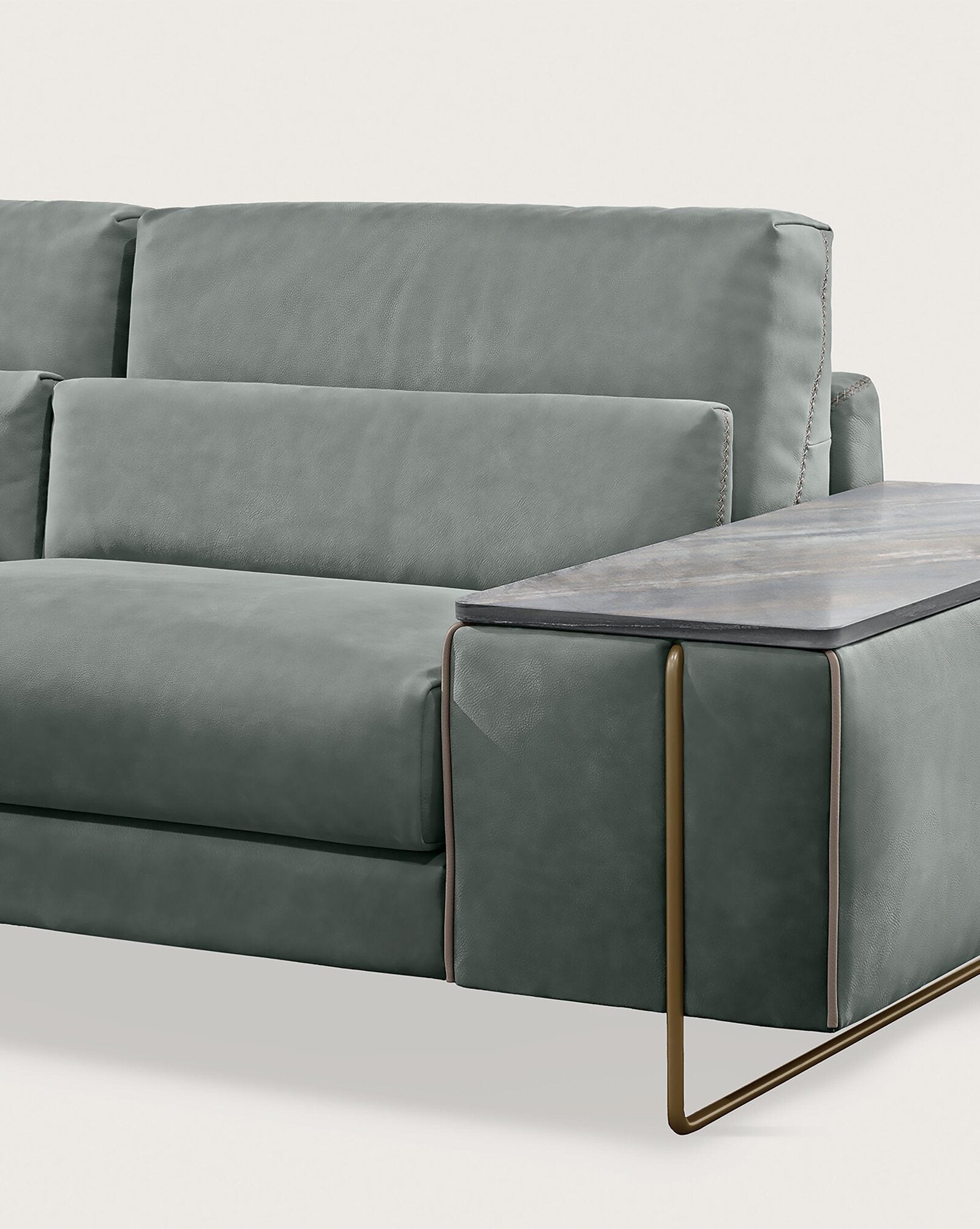 A new seating system of upholstery design sofa that embodies Gamma's ability to perfectly blend fine form and faultless functionality. One distinctive feature of Newport is the multi-density backrest cushions with a push-down mechanism and double hydraulic-piston function, allowing to rely on 2 different heights for the most comfortable seating position. It features a square silhouette with perfect proportions, decorative piping along the edges and a strikingly elegant, slanted seam detail which adds sartorial finesse and is a hallmark of Gamma’s artisanal touch.