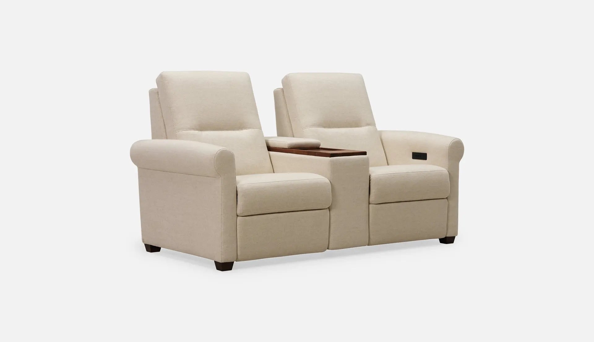The Essex premium motion collection provides a slightly traditional look with a compact roll arm, and a decorative pull tuck detail on the seat. This innovative motion collection comes standard with triple motor power and offers our optional premium amenities package (app controls, heat, massage and parental lock-out). Plus, choose from classic walnut or sophisticated legs and wood top console. Palliser Recline app required to access recline function and additional features on armless pieces.