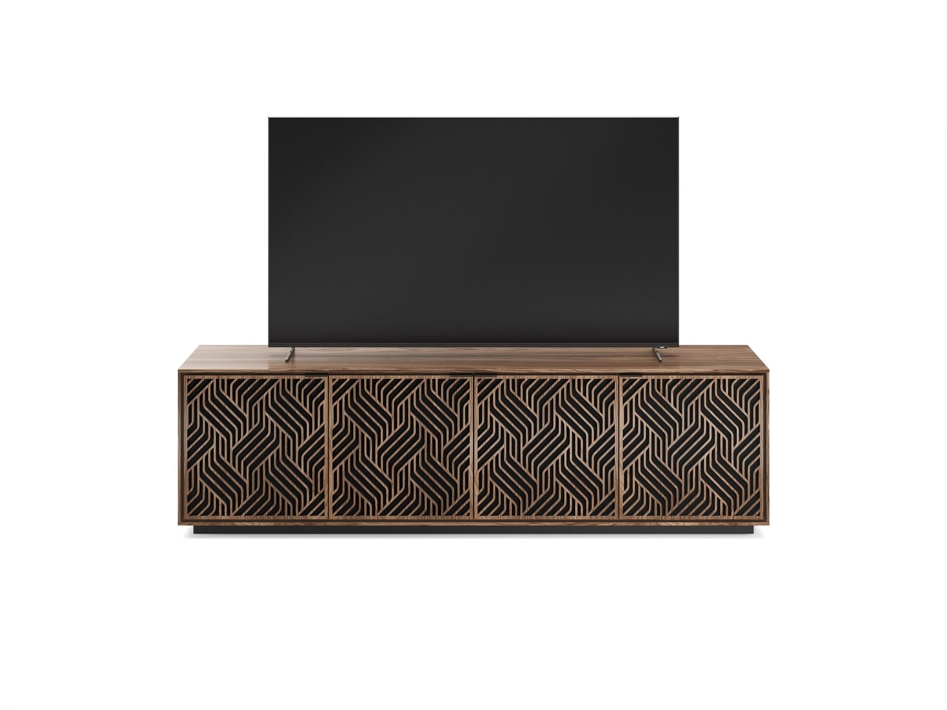 Bringing the essence of woven textures to life, this media and storage cabinet features Elements’ WEAVE door pattern. The low-profile Rolling Plinth Base—complete with hidden wheels—ensures smooth, effortless movement and easy access to all components.