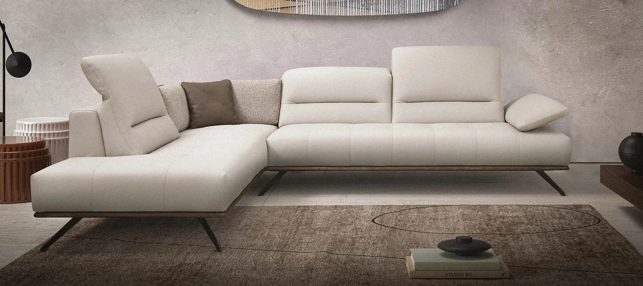The I-734 blends modern aesthetics with timeless appeal, showcasing authentic Italian design crafted from 100% Italian top grain leather. This piece offers superior durability and a luxurious feel, available in a broad selection of leather colors and complementary fabrics to suit any sophisticated interior.