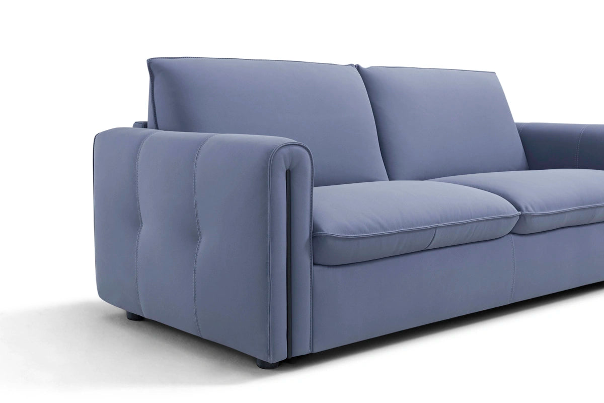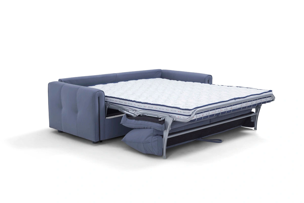 The I-889 sleeper sofa combines luxurious comfort with expert craftsmanship, featuring premium 100% Italian top grain leather or an option in fabric to suit your style. Available in four sizes, it adapts seamlessly to your living space. Its memory foam mattress offers restful support, and the design allows cushions to remain in place for effortless transformation between sofa and bed. This piece delivers both functionality and elegance, ideal for sophisticated living environments.