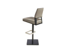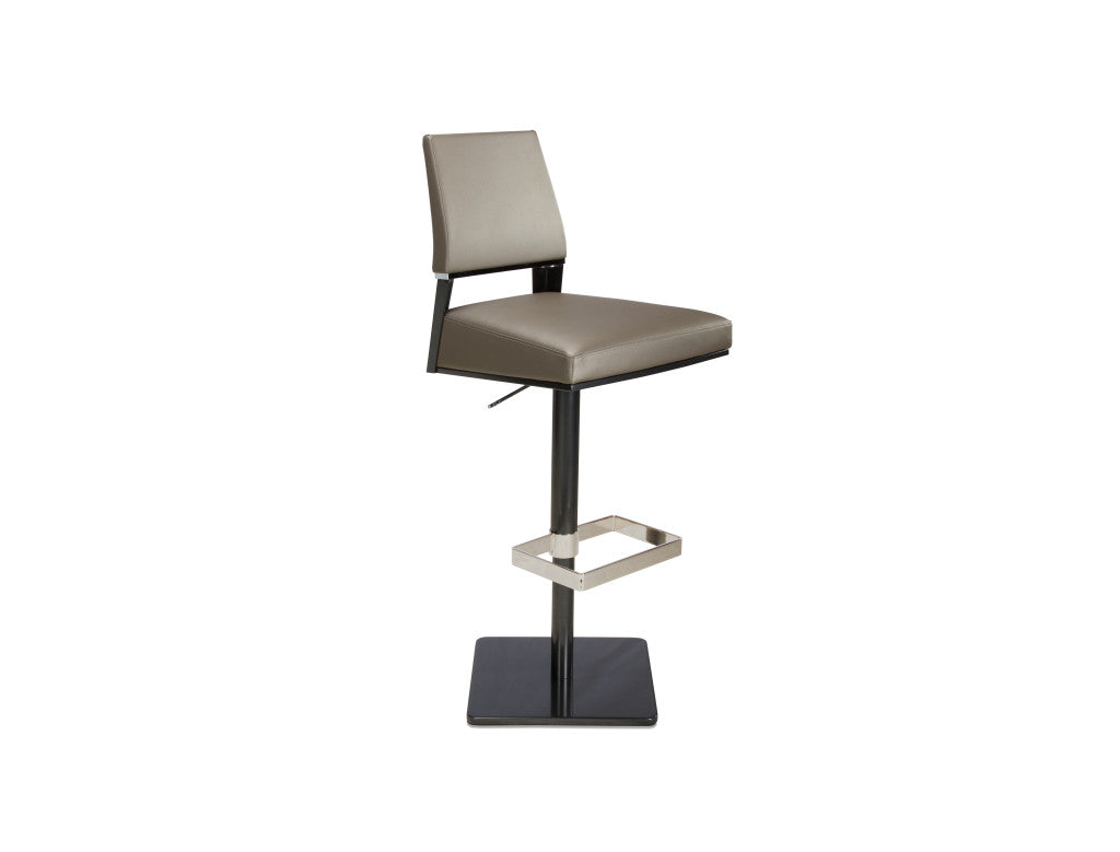 The striking silhouette of Vivian’s crisply tapered and tailored forms have been translated into an elegant adjustable swivel barstool. Vivian’s sparkle comes from a polished stripe of solid aluminum, which links the upholstered back with the sturdy steel frame, as well as a chrome footrest. Vivian can be dressed up or down to complement any interior design scheme, and will easily coordinate with any of our popular bars or pub tables. Available in all Elite fabrics and leathers, and all Elite powder-coat finishes.